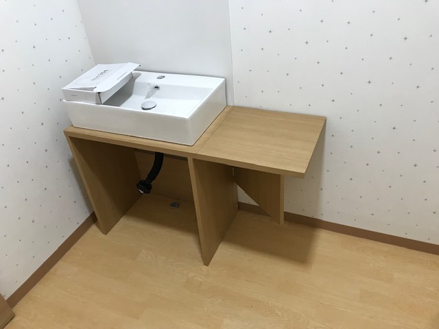 洗面台の横に物置台を作りました。